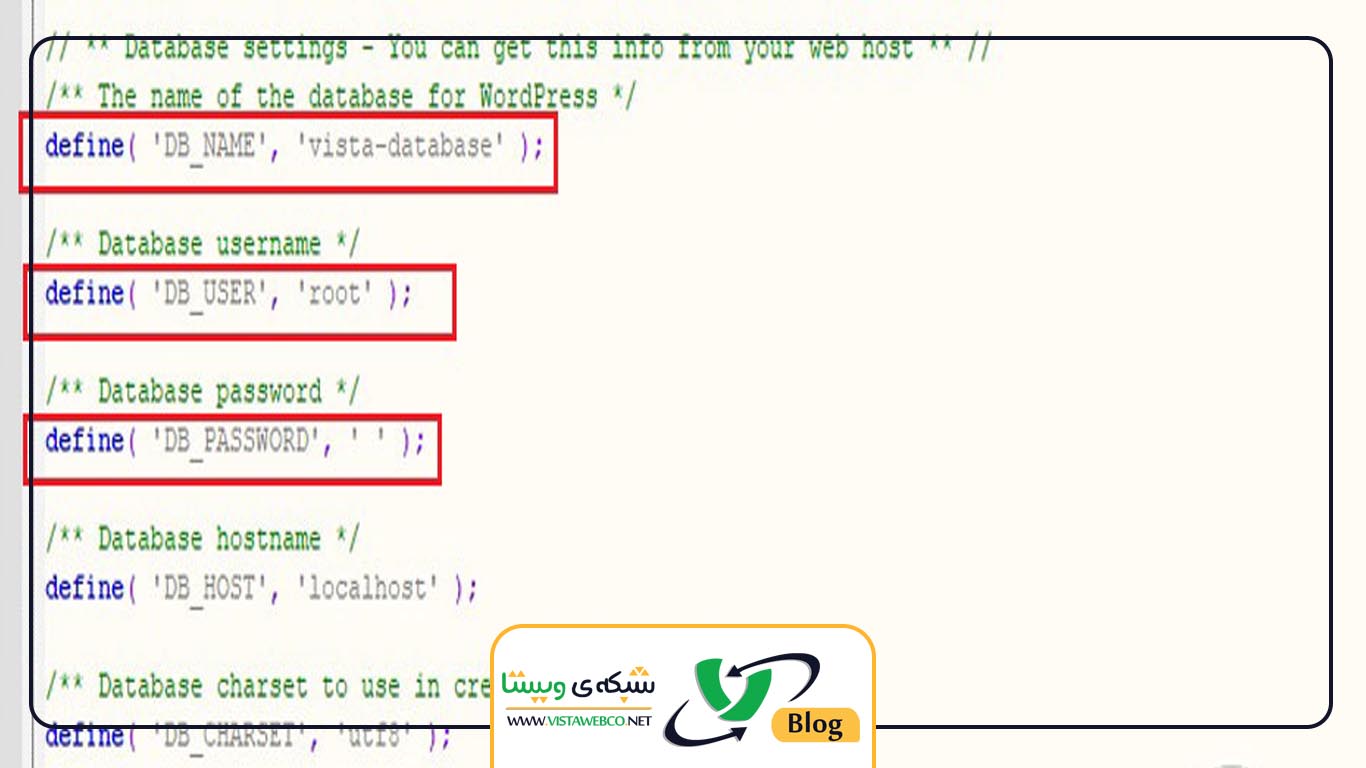 حالا داخل فایل wp-config.php باید اطلاعات دیتابیس رو وارد کنید.
